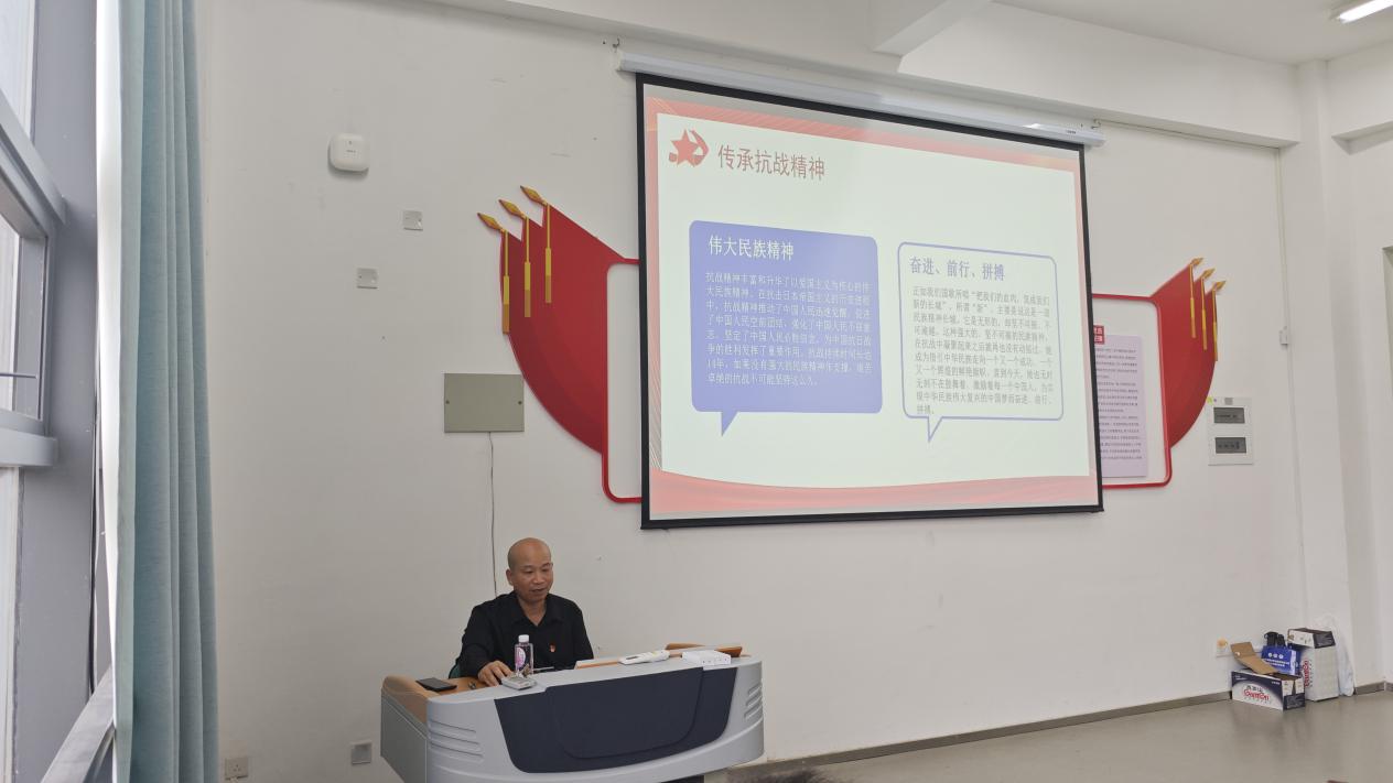 党课伊始,林宗洪以一组关键历史设问开启讲解,系统梳理了抗战历程中的重要节点:从1931年九一八事变揭开抗战序幕,到1937年七七事变爆发全面抗战,从1937年南京大屠杀的民族伤痛,到1945年8月15日日本宣布无条件投降,再到9月3日抗战胜利纪念日的法定确立,用详实的历史坐标勾勒出14年抗战的壮阔图景,让在场师生深切体会战争的残酷与和平的珍贵。